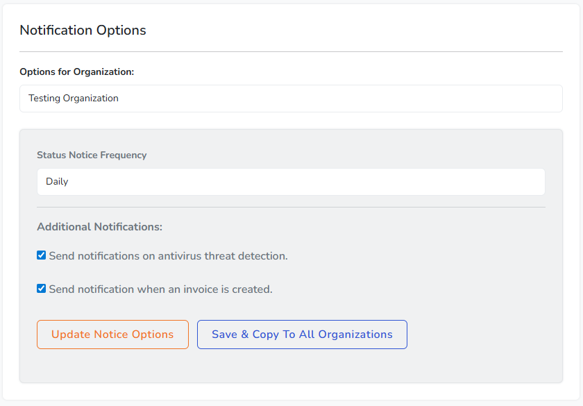 The Status Notice Frequency setting controls how often summary notifications are sent.
