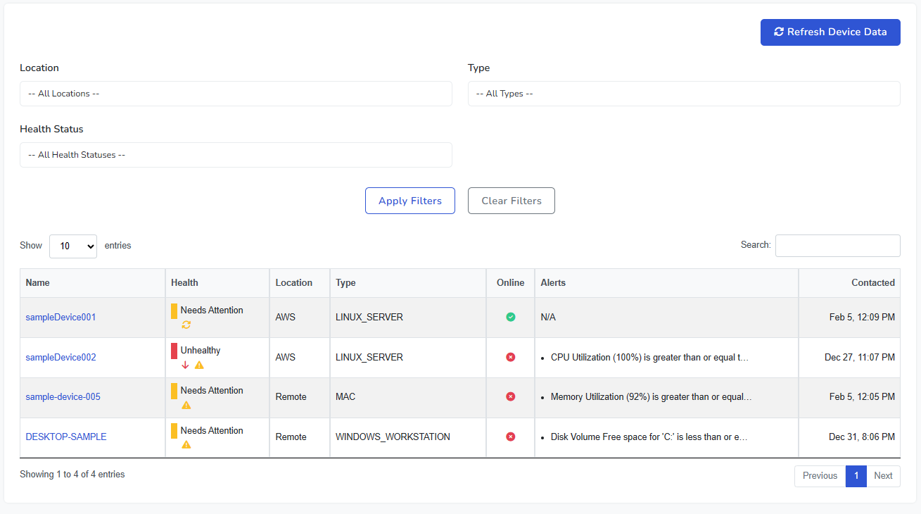 - Health Status to focus on devices that are healthy, need attention, or are unhealthy.